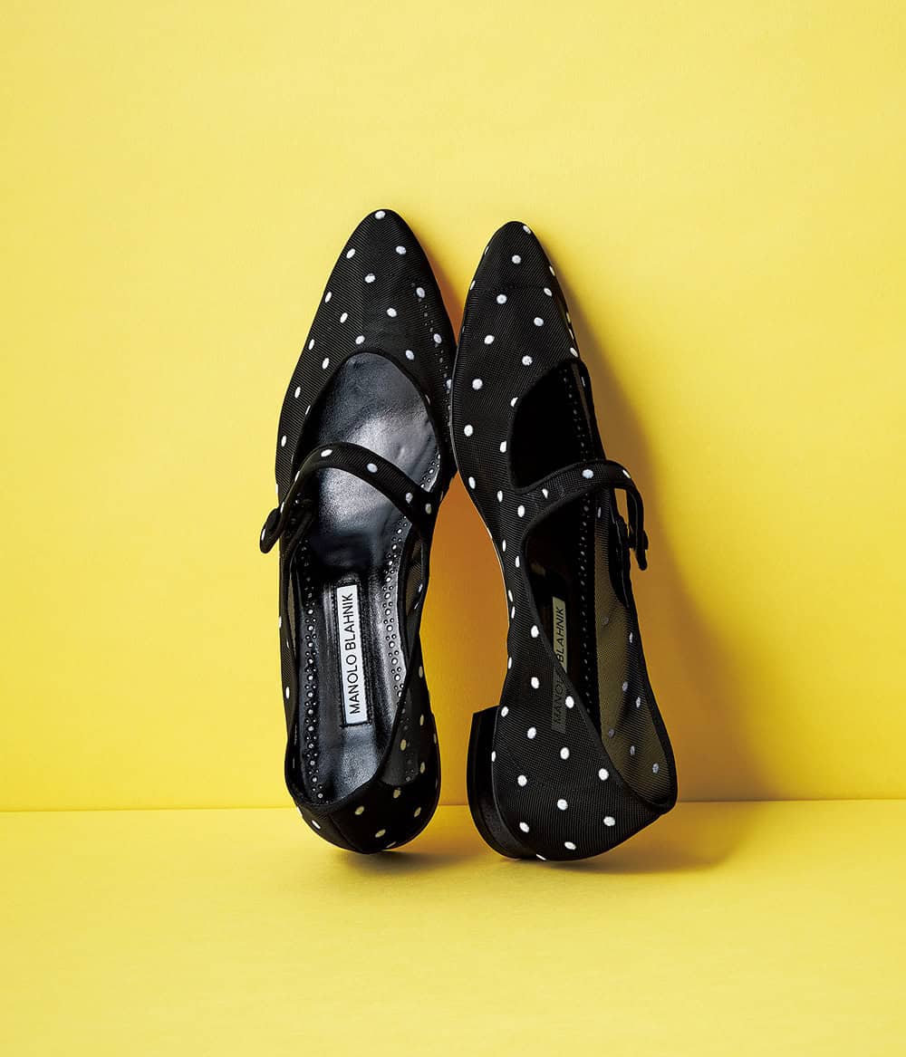 ドット柄のシースルー。メッシュで足当たりのよさも抜群です。フラットシューズ「カンパリフラット」〈H1cm〉(マノロ ブラニク/ブルーベル・ジャパン)
