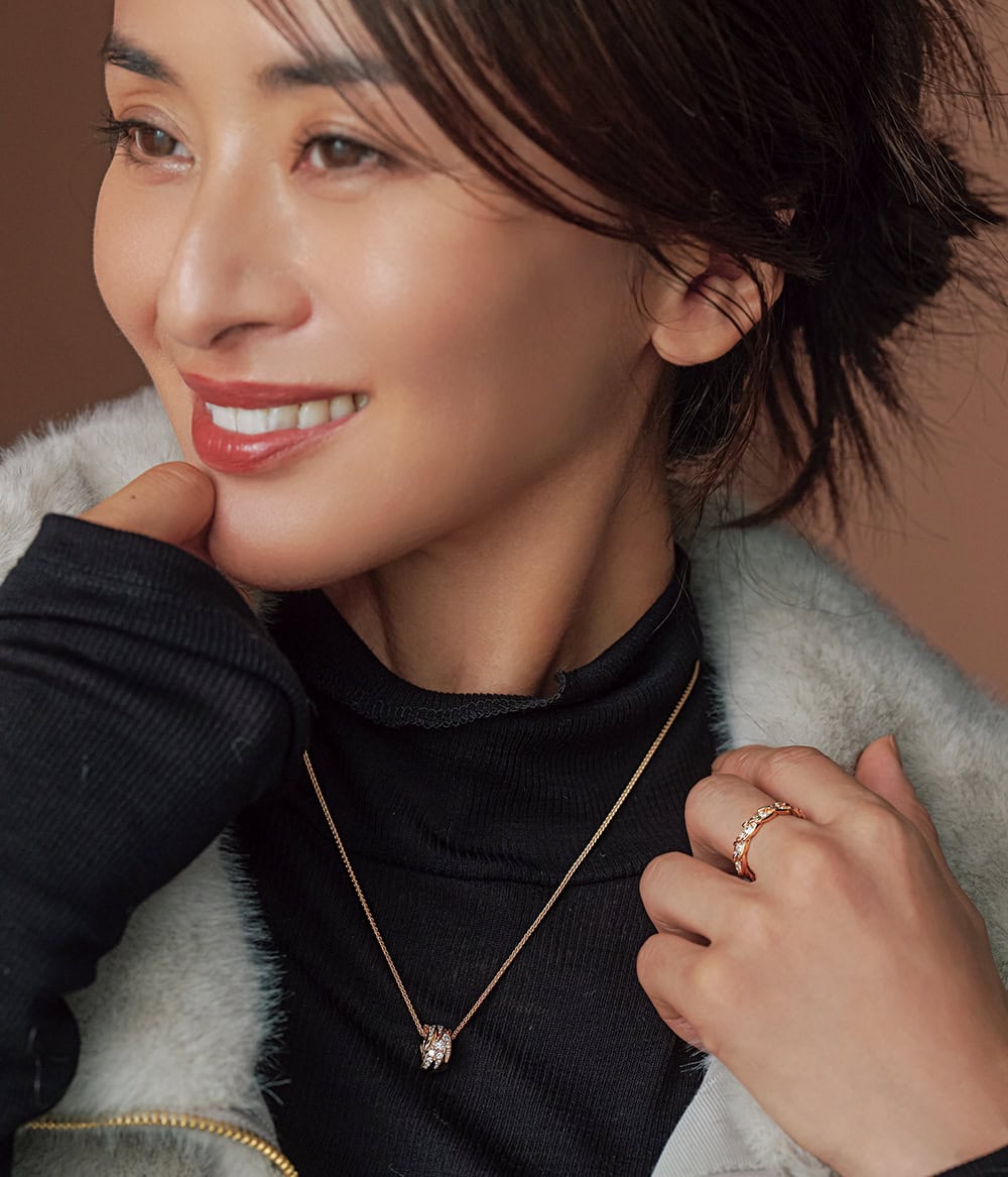 撮影/西崎博哉(MOUSTACHE)〈人物〉、西原秀岳(TENT)〈静物〉 モデル/クリス-ウェブ 佳子ヘア・メーク/TOMIE スタイリスト/亀 恭子 取材/味澤彩子 ※素材の表記は、RG=ローズゴールド、PT=プラチナ、DIA=ダイヤモンド。※商品の価格は、発売日時点のものです。 ※情報は2025年12月号掲載時のものです。