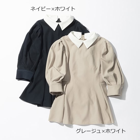 取り外し可能なシャツ素材の襟付きでコーデの幅が広がるブラウス。ウエストがシェイプされたペプラムシルエットは女性らしさと華やかさを両得。タックを施したボリュームスリーブもコーデのアクセントに。