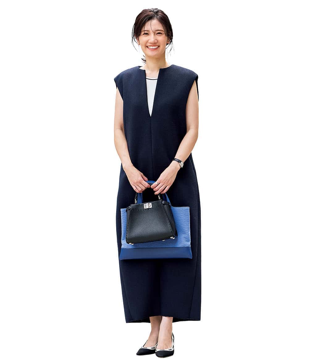 「普段は、実際の性格である「運動家」らしく、甘さを盛った〝ほぼクロ〟が多め。女子会へ行く時は、自分の気持ちに正直に、柄や素材で高揚感を足し、オシャレを楽しみます。その反面、息子の幼稚園送迎や行事の日は「擁護者」になりきって周りに馴染むコンサバママに。ブランドが前に出すぎないようにしたり、スカートの丈感も気持ち長めを意識します」
