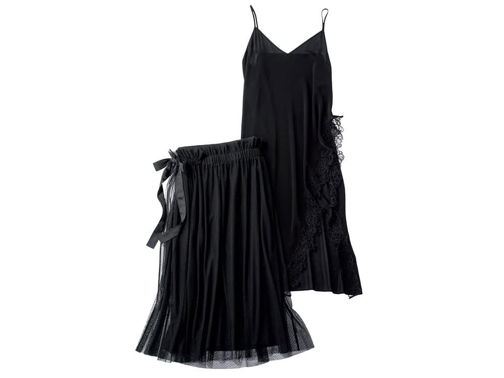 ワンピース¥79,200(サヴィル サヴィ)レイヤードスカート¥30,800(アウディーレ)