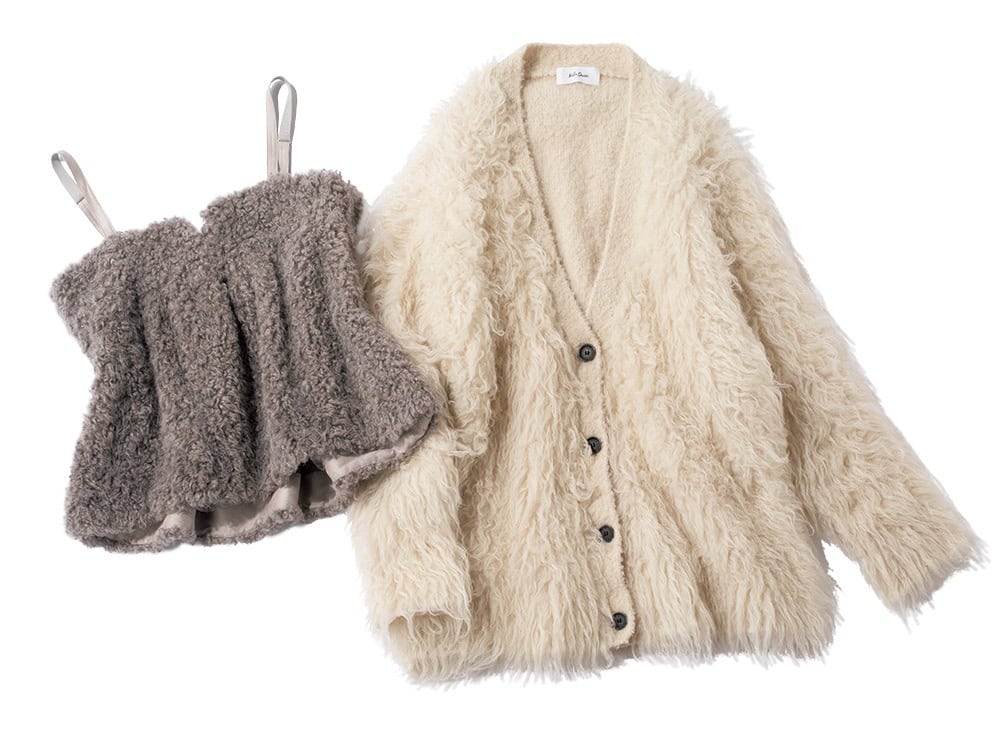 ビスチェ¥25,300(ボールジィ/トゥモローランド)カーディガン¥15,400(Mila Owen/Mila Owen ルミネ新宿2店)