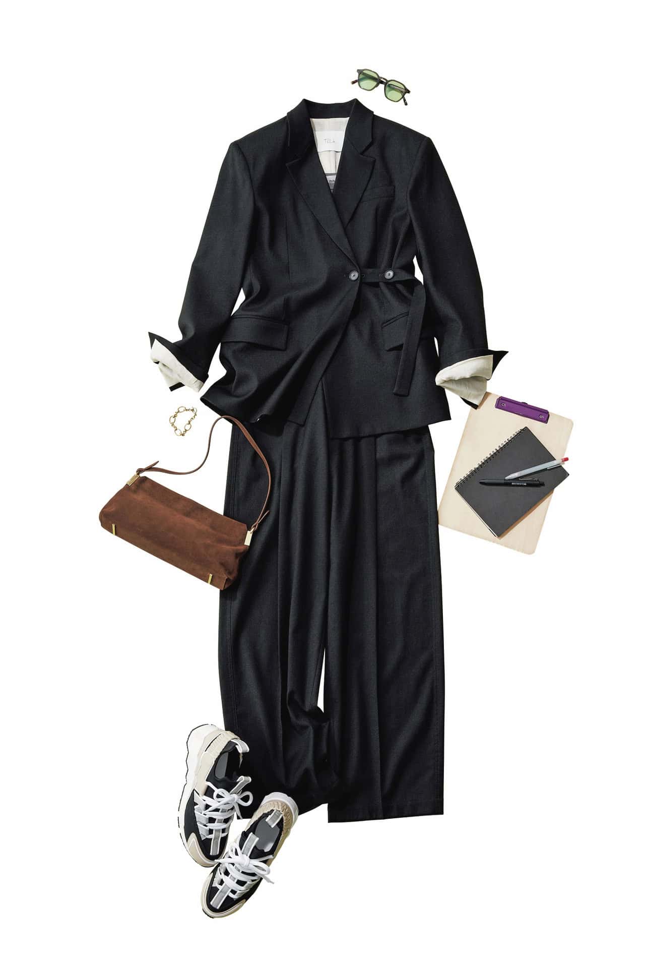 秀逸でシックなジャケットセットアップに、スニーカーを合わせて、ほどよい抜け感とこなれ感をプラス。足元のスニーカーがコーデ全体のメリハリをつけます。コーデの軸が整っているからこそ、スニーカーがスタイリッシュな印象へと昇華。そんな大人ならではの洗練が光るスタイルです。