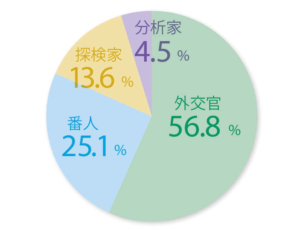 多かったのが協調性の高い外交官と真面目で努力家な番人。母として、大人としての協調性と責任感を持つ読者が多いという結果に。※STORYアンケート調べ