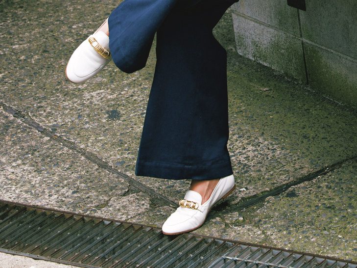この秋冬の王道となりつつあるローファーパンプス。二足目という人や、コーデのアクセントに使いたいという人は、雪のように真っ白なカラーやバックルにひねりが利いたデザインを。寒い日の多いこのシーズンのお出かけも個性派なビジュアルが高揚感を高めます!