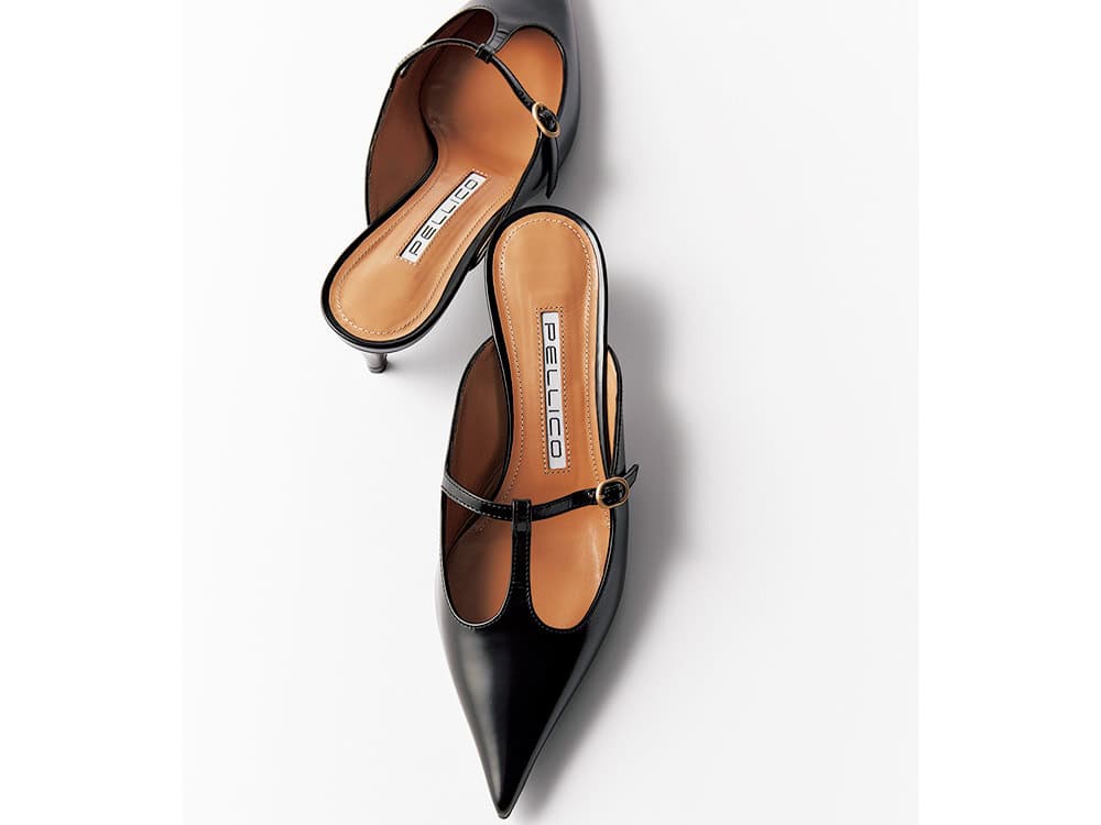 ンズライクなパンツの日ほど華奢なヒールが欲しくなる。今のパンプスの正解はローヒールのこの女らしさのさじ加減。美フォルムTストラップで華奢な足元が完成。