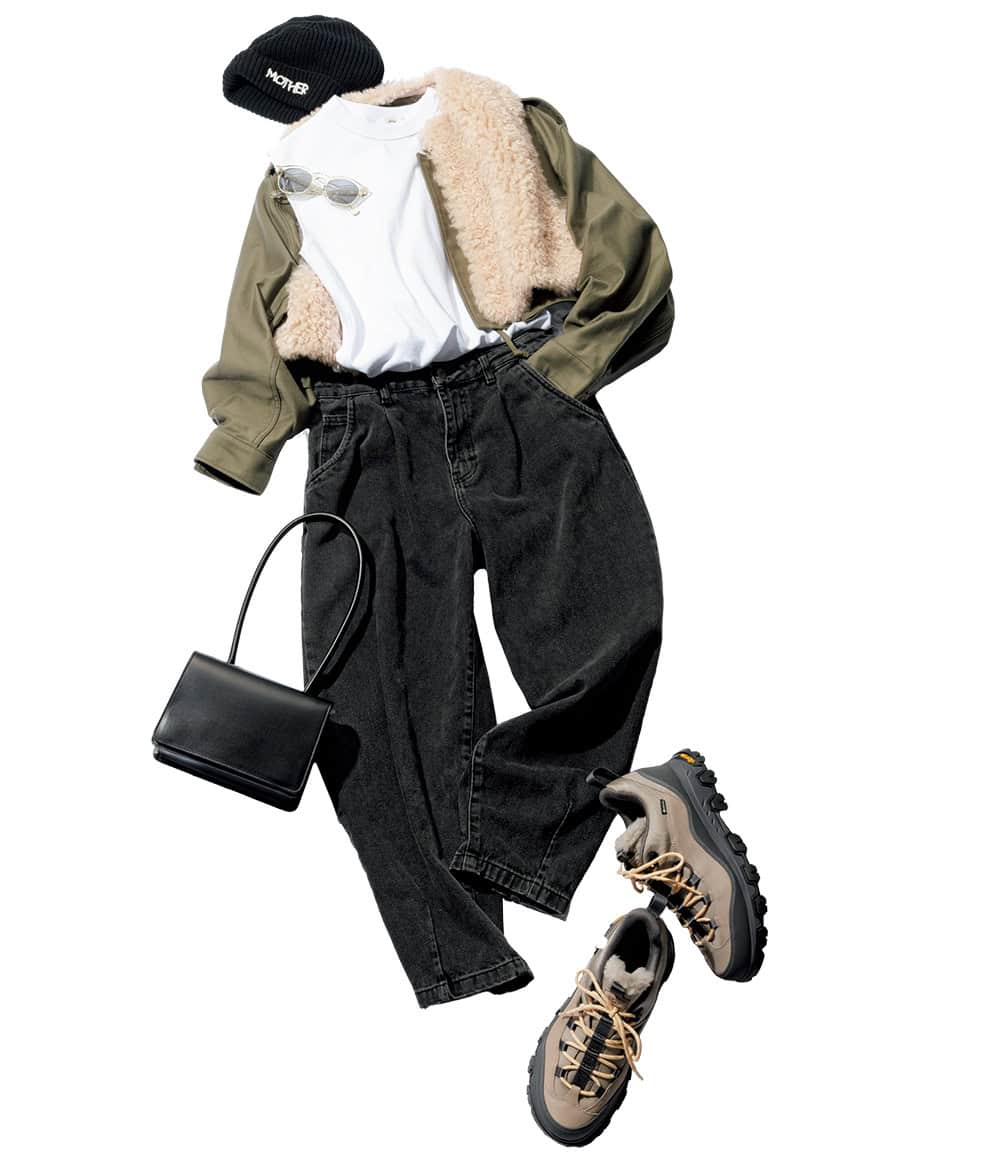 パンツ/ZARAニット¥59,400(アロー)ジャケット¥41,800ジレ¥39,600(ともにハイク/ボウルズ)Tシャツ¥17,600(エイトン/エイトン青山)バッグ¥49,500(バケットバゲージ/アイネックス)靴¥38,500(アグ®/デッカーズジャパン)ニットキャップ¥14,300(マザー/リトルリーグ インク)サングラス¥47,300(アイヴァン/アイヴァン 東京ギャラリー)