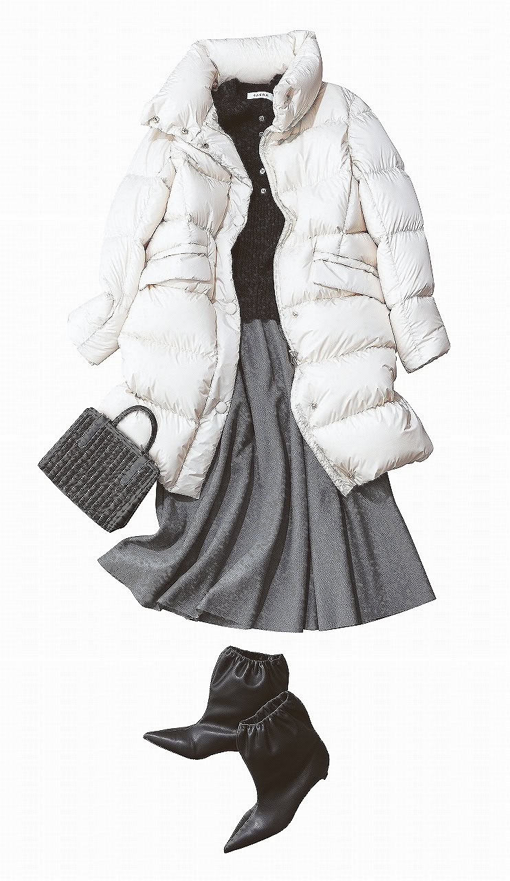 白ロングダウンは”クシュッ”とカジュアルダウン