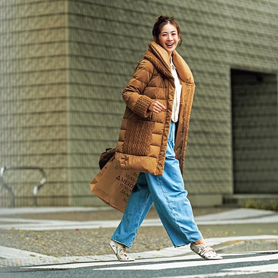 ③ヒップまですっぽり!シーンを選ばず幅広く活用できるミドル丈ダウン