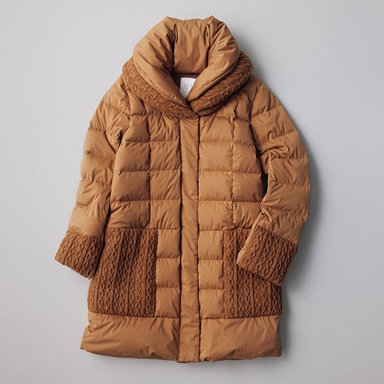 マットな質感のダウンとケーブル編みニットの組み合わせがリッチ。いつものデニムスタイルに羽織るだけで、表情のあるコーディネートが完成します。伸縮性の高い独自開発した「Dual Flex®」を使用し、身体にFITするのに動きやすい、透湿性にも優れたストレスフリーな着心地を実現。自宅で手洗いも可能です。