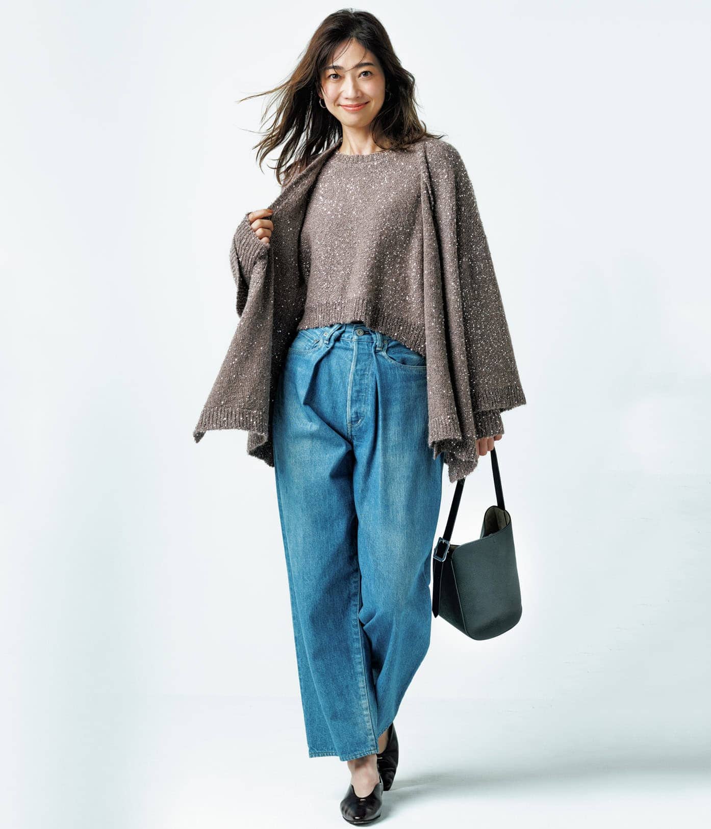 カジュアルの定番であるデニムも、人気のバレルシルエットにアップデートを。ウエストのタックデザインが、冬の定番であるニット×デニムを今っぽく更新してくれます。