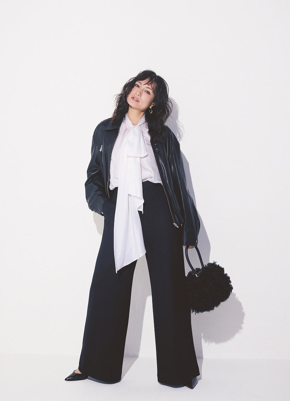 定番「黒パンツ」はワイドで旬顔に