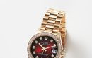 ベゼルとオフセンターの日付表示に共にラウンドカットのダイヤモンドが施された煌びやかなフェイス。深みのあるカラーのアリゲーターストラップでドラマティックに。