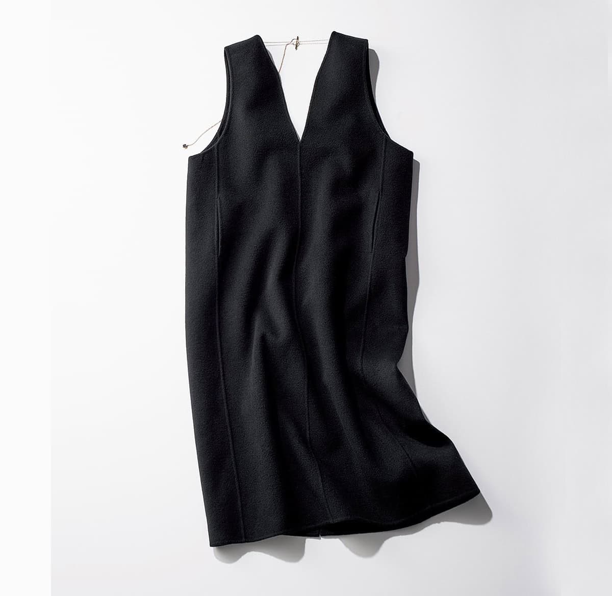そう思ったきっかけは、プレスルームで出合ったこの1枚のドレス。今年20周年を迎えたADOREの中のライン「UNiPH」のもので、ここに、「大人の女」のブランドの矜持を見た! と久しぶりに気持ちが浮き立ちました。繊維が細く、しなやかなウール120sを使用し、このハリを出した黒のドレス。体のラインをことさらに強調したりはしないけれど、成熟に近い完成度。そして大事なのは、適度な重さ。イージーでライトな服は、本当の大人に似合うのか。もしくは、私たちはその簡単さに逃げていないだろうか。と、最近考えていたことの答えがあったのでした。