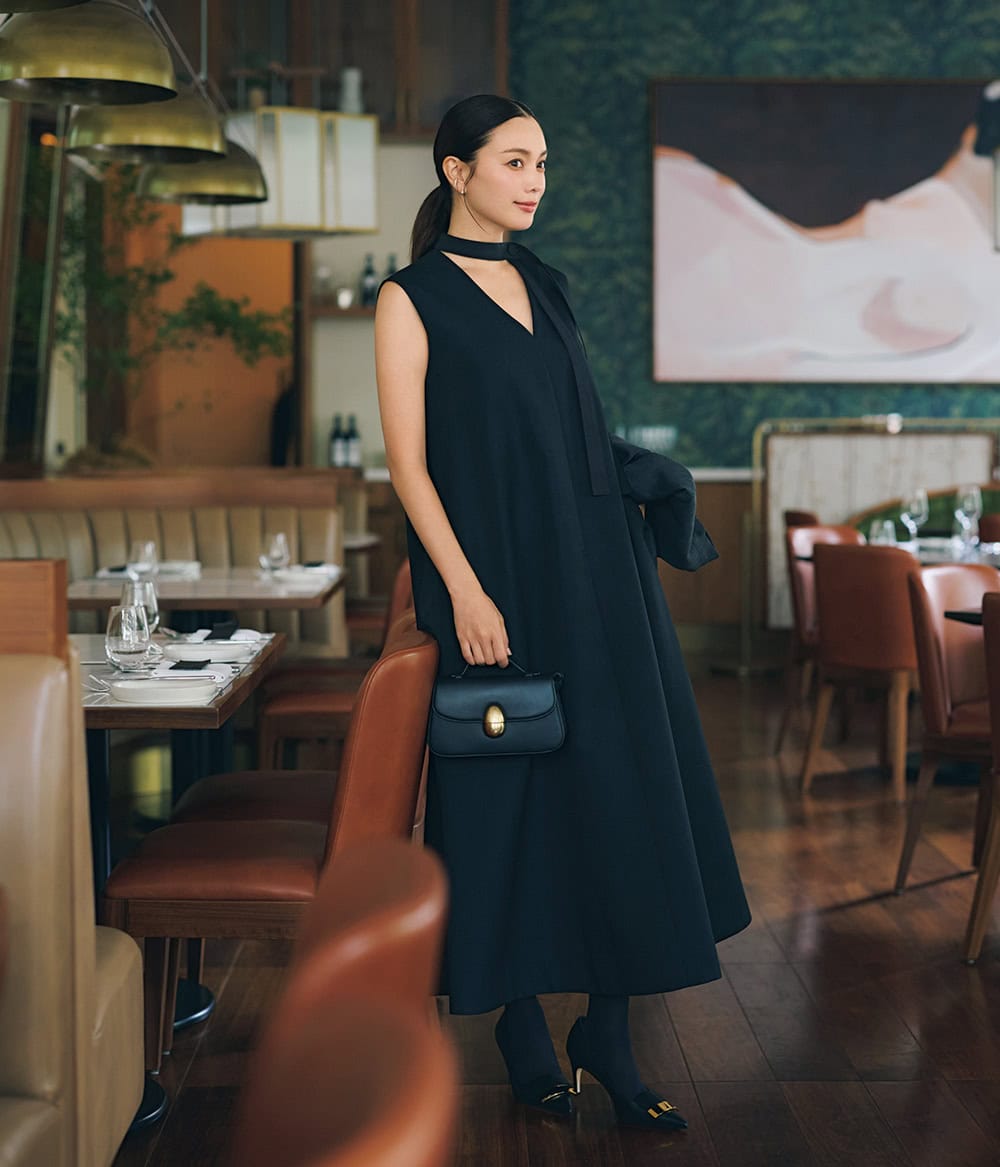 異性もいる空間だからこそ、信頼感や落ち着きを意識した装いをしたい。余計な装飾のないシンプルな黒ワンピースの静けさは、しかし逆に私を際立たせてくれる気もする。