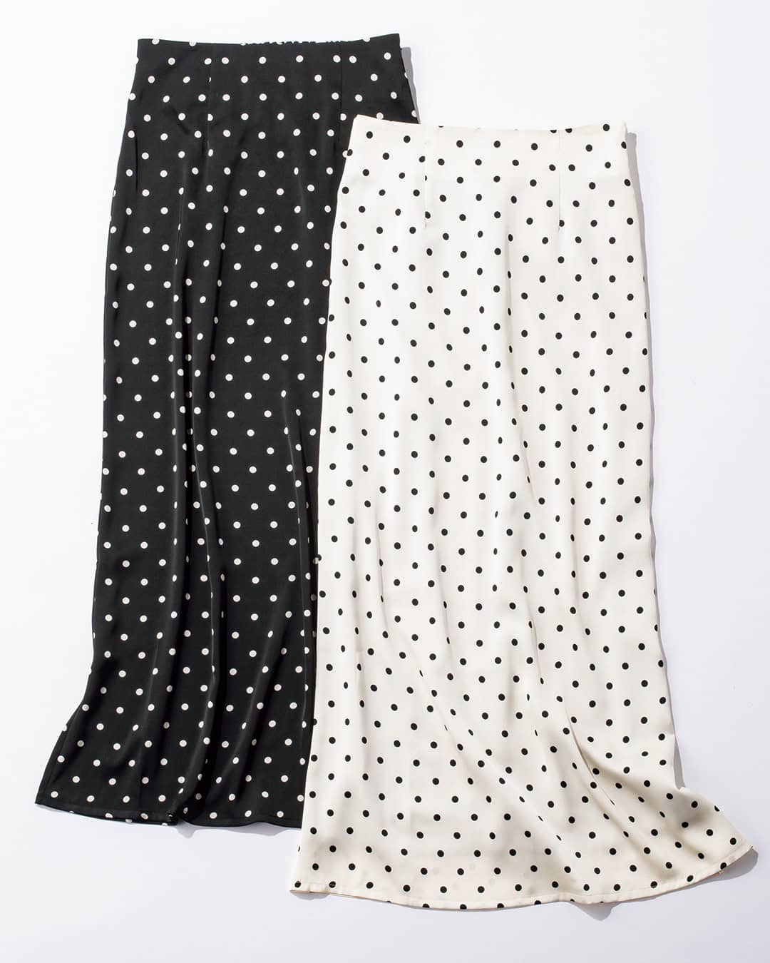 ★ ⑤華やかなのにイージーケアで日常使いしやすい「サテンスカート」