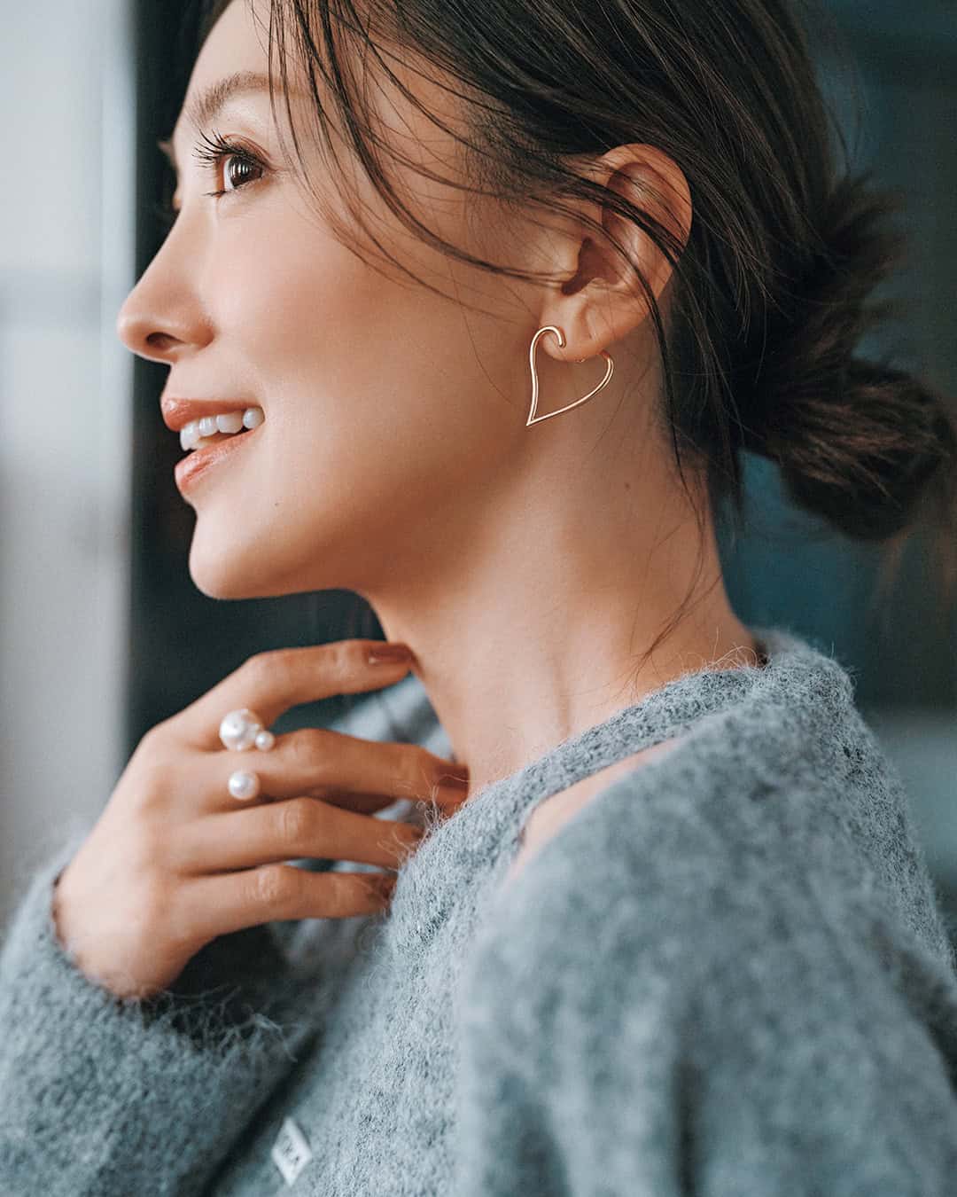 ③顔周りがパッと華やぐ!華奢なラインで派手過ぎない「ハートピアス」