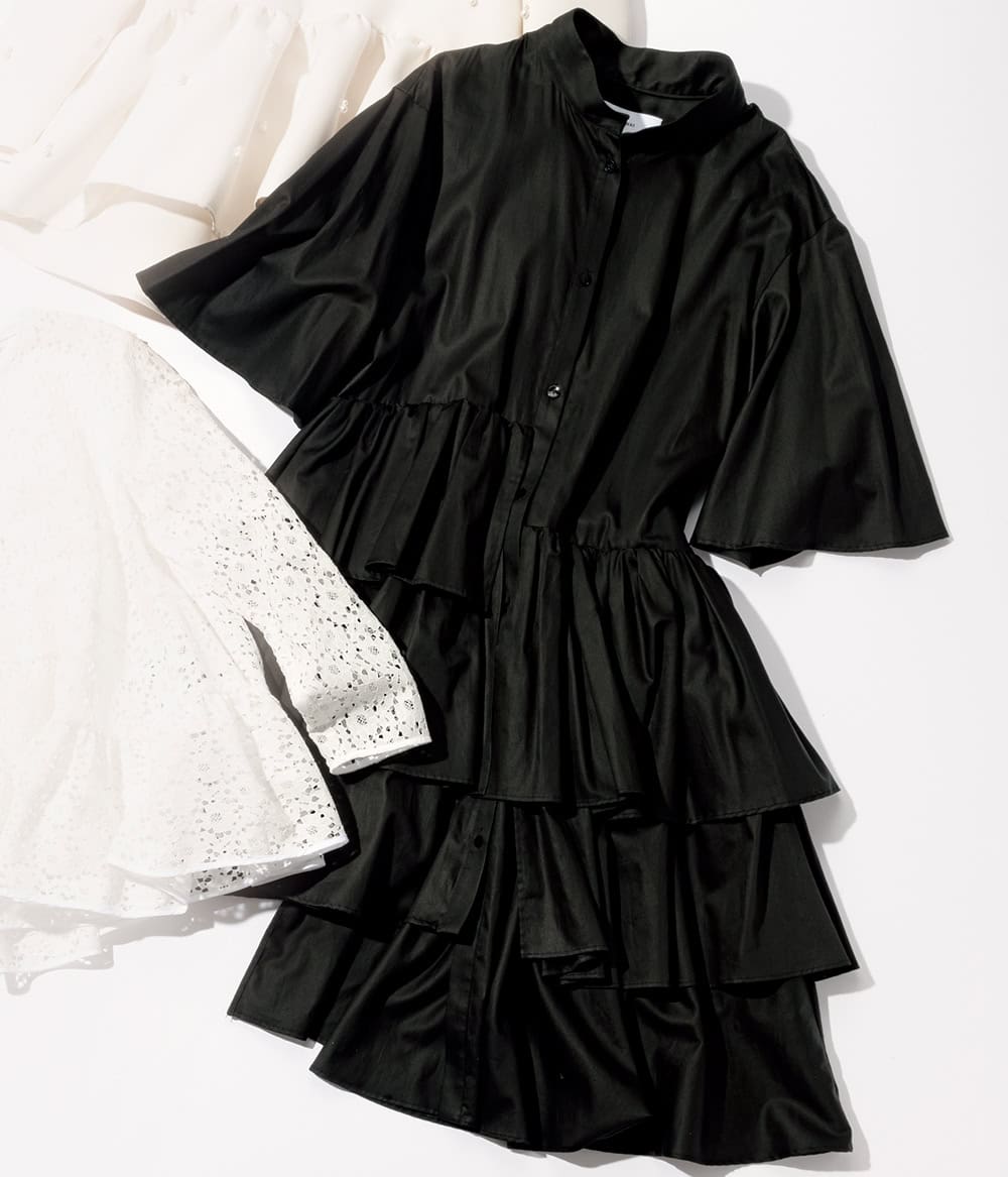 黒のボリューミーなティアードのペプラム。ほぼクロコーデのスタメンに。