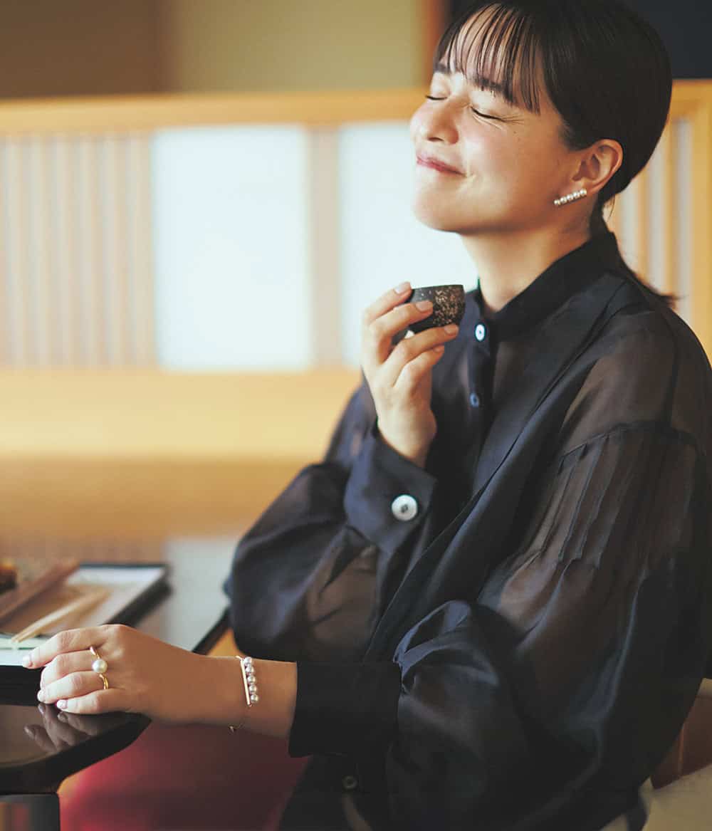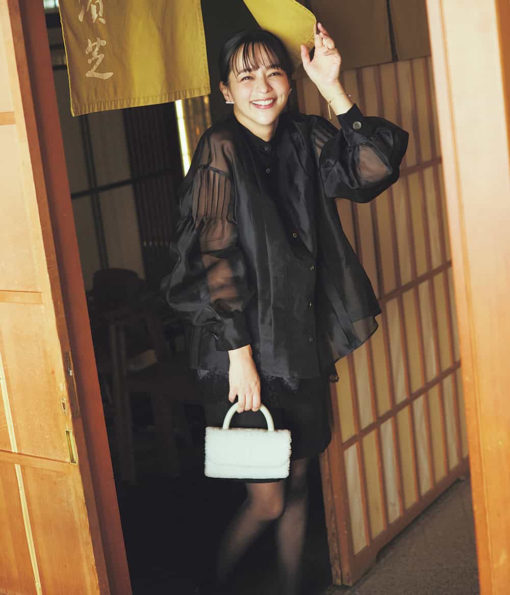 ハレの日にはお寿司をいただく、という加藤ローサさん。高級なお寿司屋さんは「また頑張ろう!」と思える特別な空間。贅沢時間を上品に盛り上げる、大人の肌見せ服の正解を考えました。今回は【シアートップス】に着目!