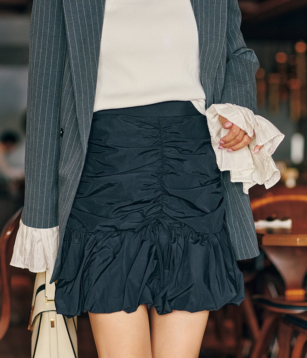 HIANDのモコモコの花柄スカートに一目惚れして購入しました。黒だからこれくらい甘めのディテールでもマニッシュなジャケットを合わせるとナイトアウトでも大活躍してくれます。
