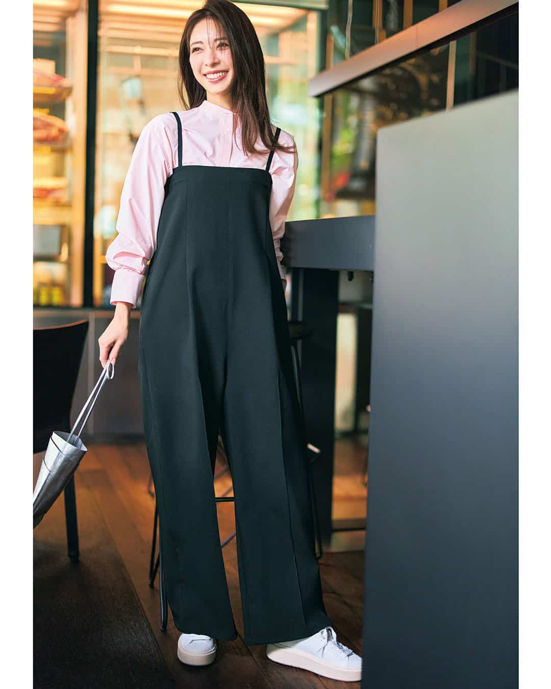 オールインワン¥22,000(エルド)シャツ¥8,990(アンフィーロ/アンフィーロ〈オンワード樫山〉)バッグ¥24,200(ノマディス/ノーベルバ)シューズ¥39,600(デイト/ティースクエア プレスルーム)
