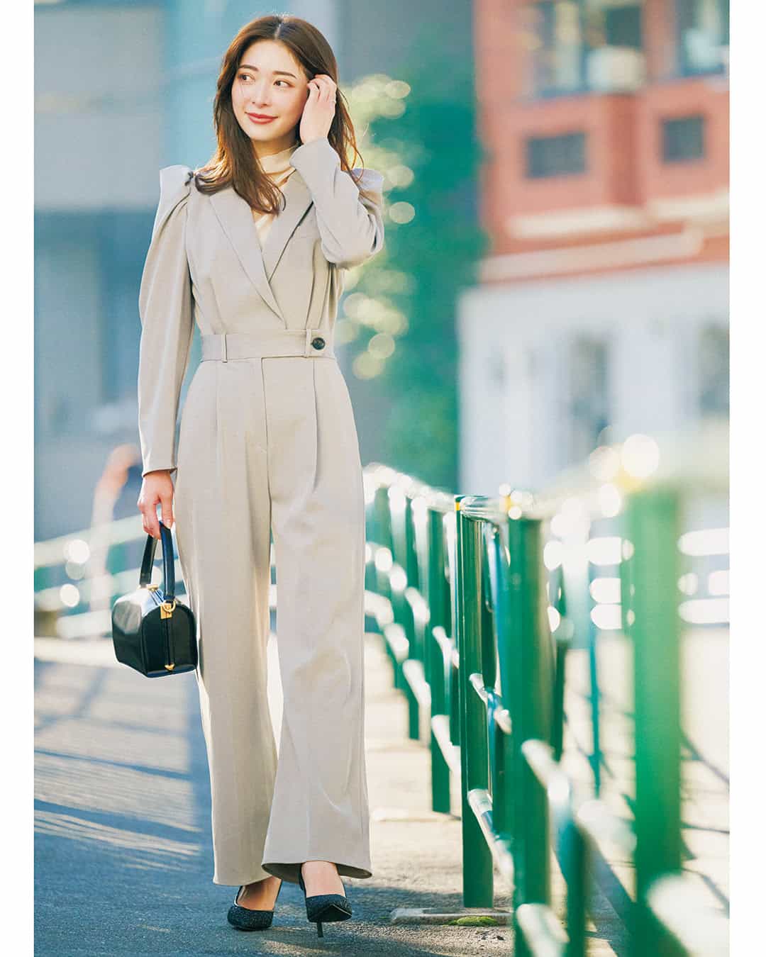 ①一枚でコーディネートが決まり、着映えする「上品オールインワン」