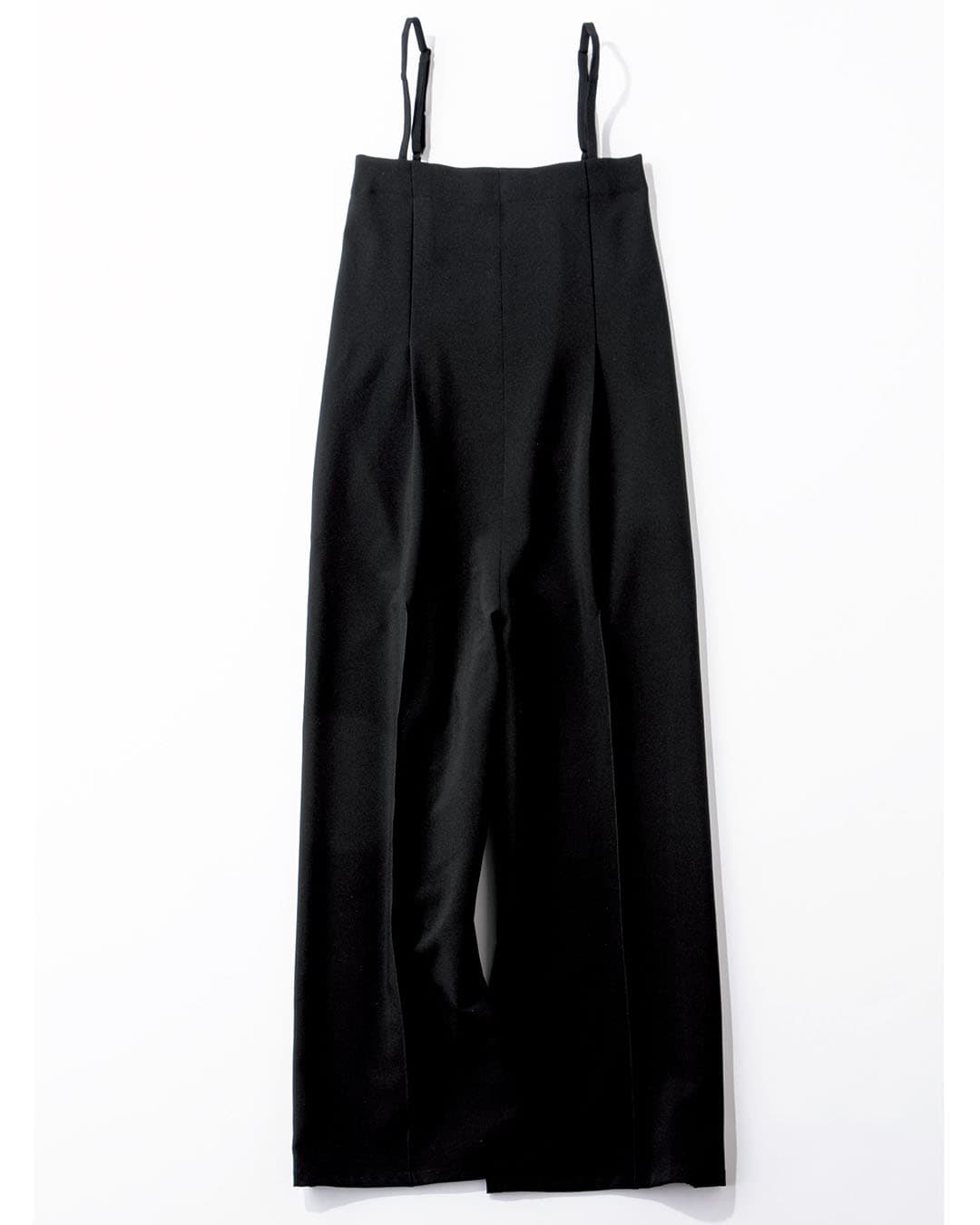 華奢なストラップとチューブトップのデザインで上半身は女性らしく、ボトムスはワイドでハンサムな印象のオールインワン。レイヤードするアイテムを選ばず使える!