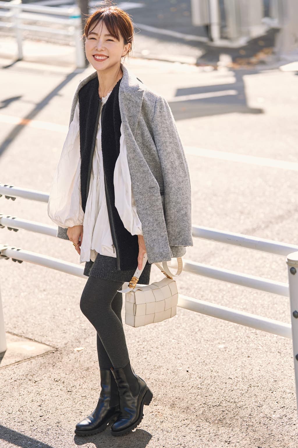 映えるバイカラージレでつくる冬のキレイめカジュアル
