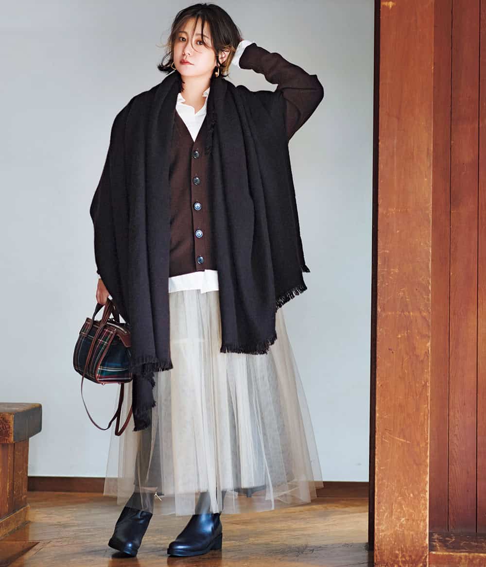 【大判ストール②】ボディラインを曖昧に魅せるのがカギ