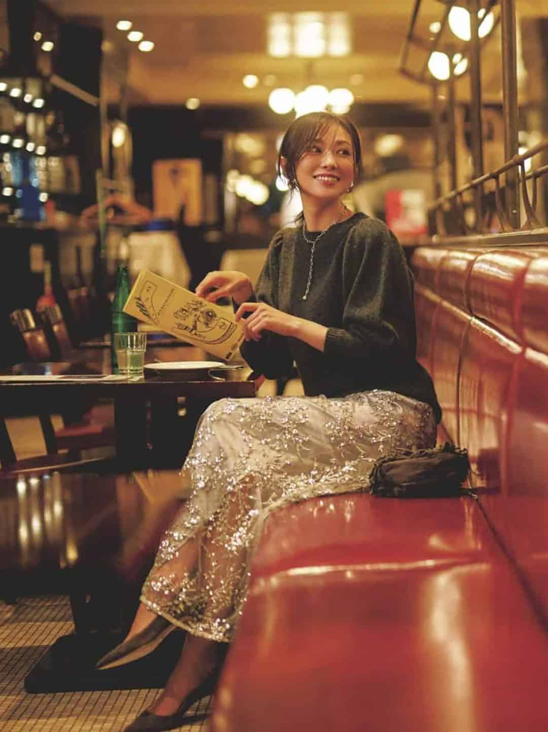 「光沢スカート」投入でハイクラスなスタイルに