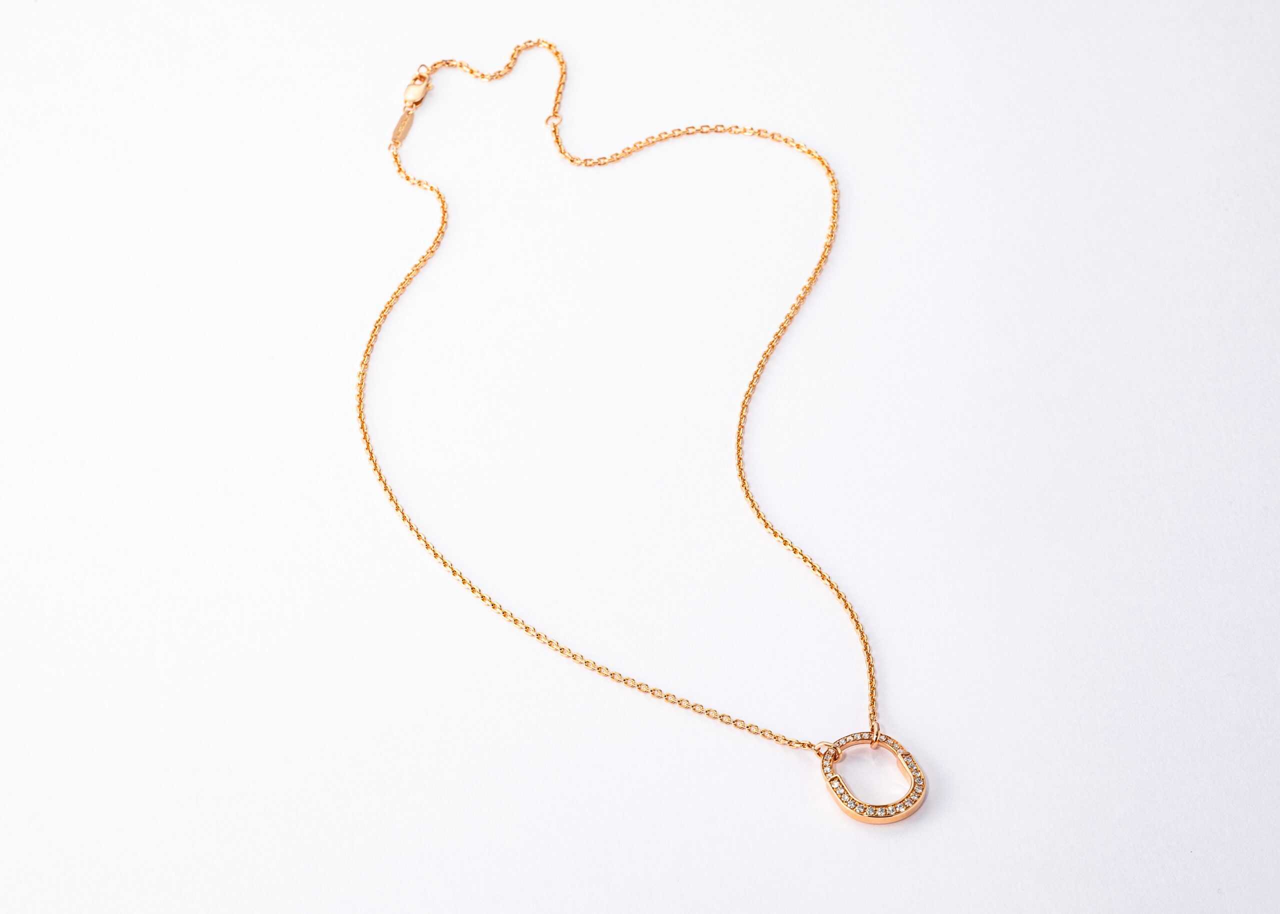 胸元で柔らかく光を反射するダイヤが繊細にきらめき、ピンクゴールドの温かみが肌に自然になじんで、日常にそっと贅沢を添えます。オフィスでも休日でも、着こなしを格上げする永遠のシグネチャー。瞬間ごとに表情を変える輝きが、私らしさをそっと引き立てます。