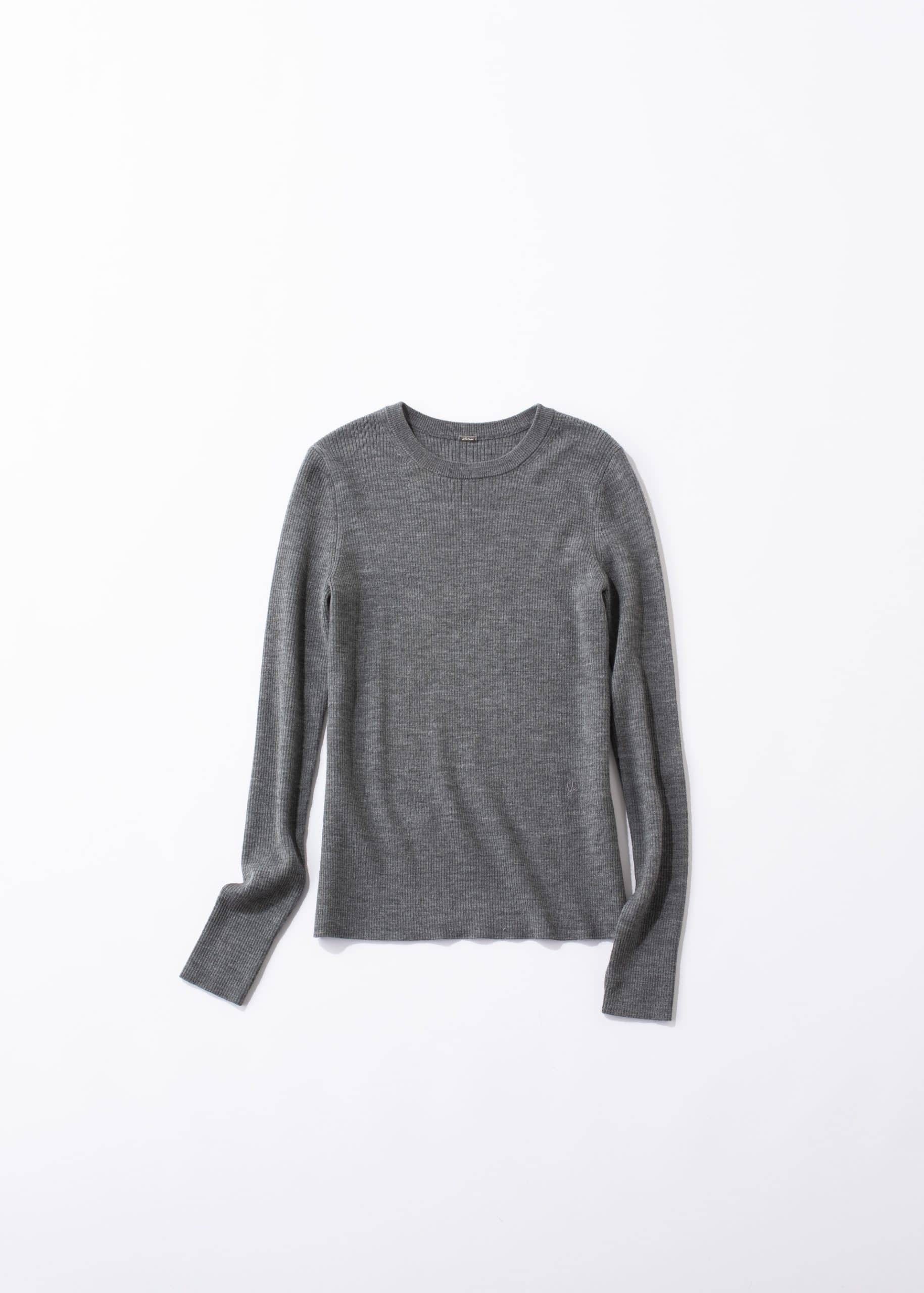 毎年人気を誇る、洗練リブニット。ウール混の糸で編み立てた、しっとりと滑らかなハイゲージ素材が魅力で、自宅ケアができる手軽さも嬉しいポイント。ジャケットのインにすっと馴染み、オンにもオフにも活躍する万能ニットです。