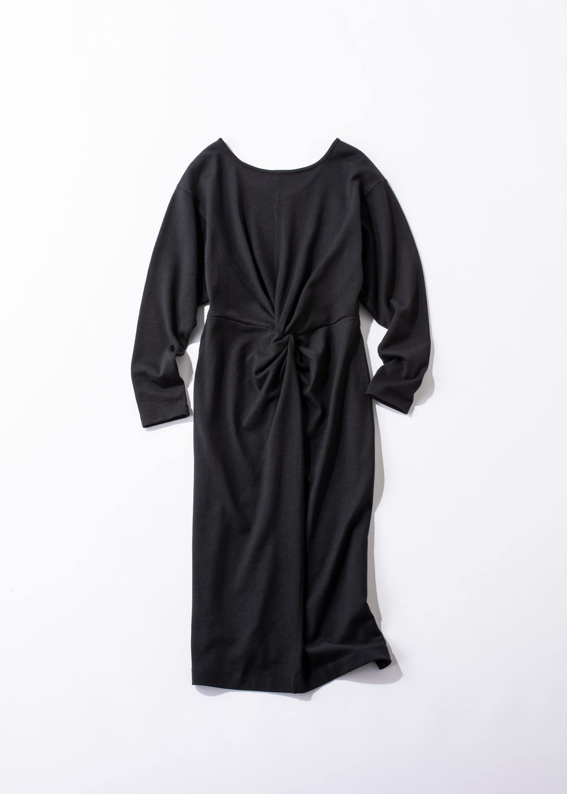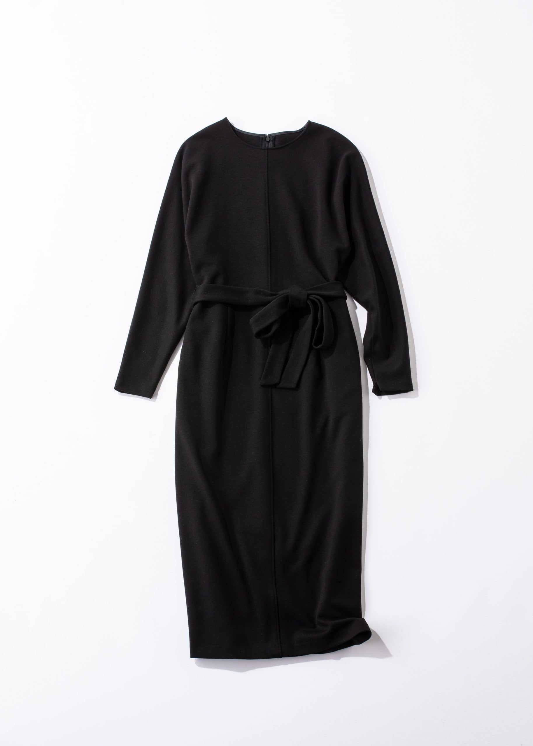 ありそうで見つからない、きちんと見えを叶える一枚。ツイストネックが凛とした女性像を演出するIラインワンピは、仕事関係の新年会にも最適。二重織の程よい膨らみが体のラインを拾わず、上品な艶感と快適なストレッチ性を併せ持っています。手洗いも可能なのででワークデーにも。