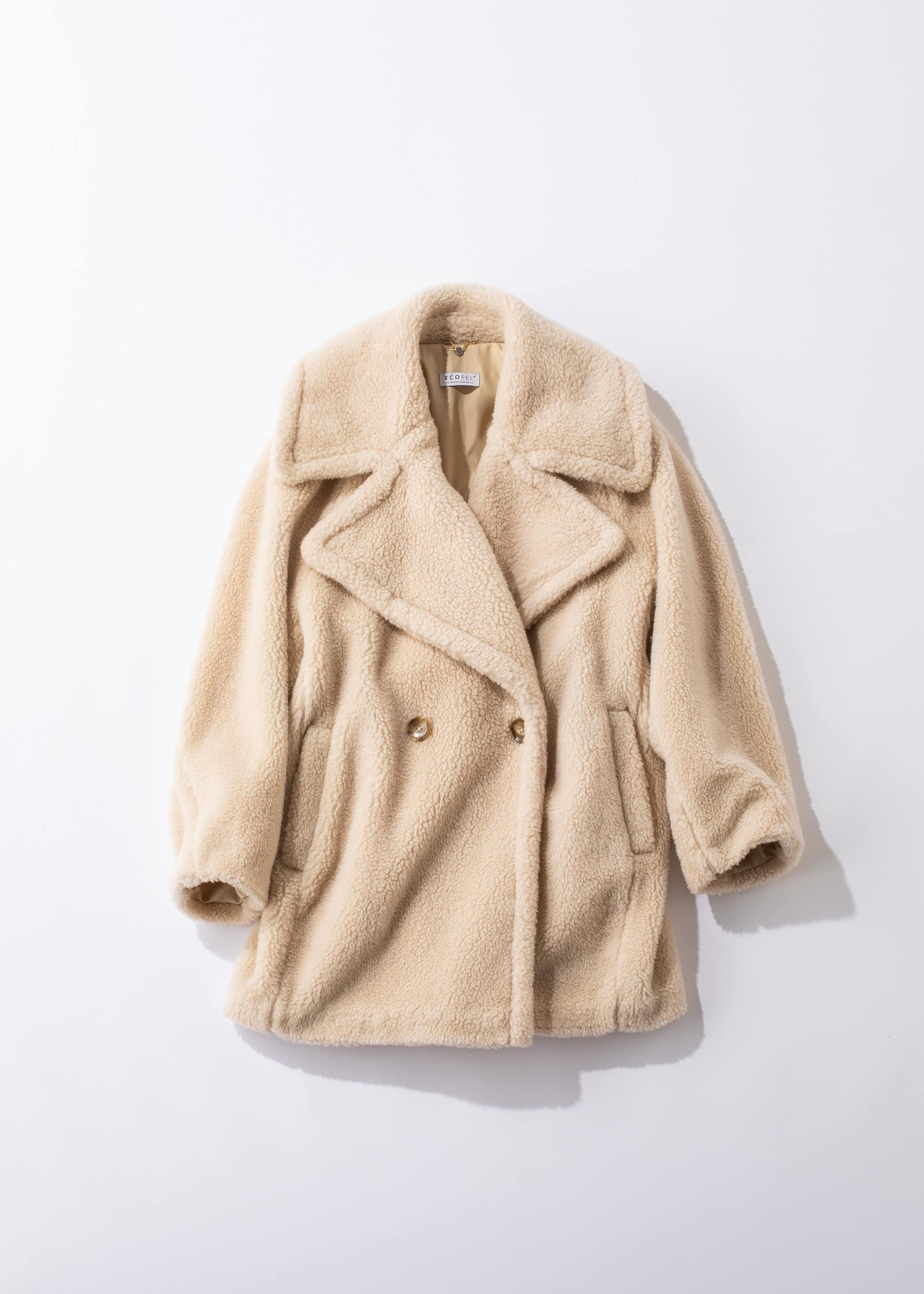 インポート素材の上質なボアを贅沢に使用した、柔らかく心地よい風合いが魅力の一着。ふんわりとしたコクーンシルエットが女性らしい抜け感を演出し、さっと羽織るだけで品のあるきれいめカジュアルが完成。デイリーに活躍するミドル丈コートです。