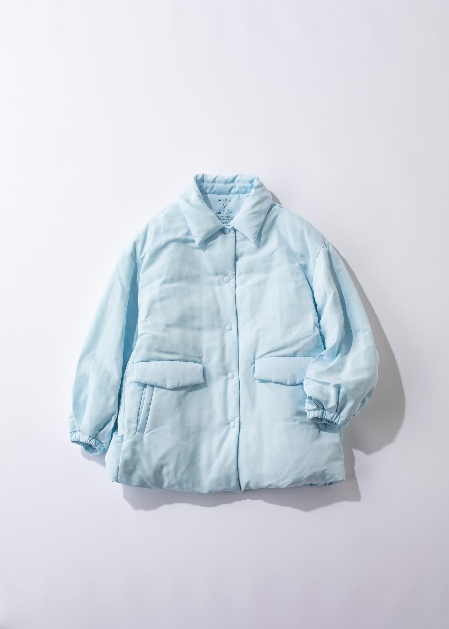 軽やかで暖かく、肩の力を抜いた着こなしにぴったりのステンカラーダウン。身頃のステッチを省いたすっきりシルエットは、ラフになりすぎず、大人のカジュアルスタイルを後押し。柔らかなライトブルーが冬のコーディネートにさりげない抜け感をプラスします。