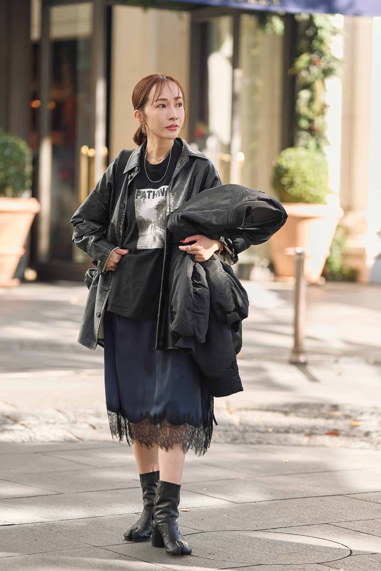 今季トレンドのレースアイテムをスカートで取り入れてみました! 甘いレーススカートは、あえて辛口なレザージャケットとフォトTを合わせてMIXスタイルに。ほどよくカジュアルダウンすることで、大人でも取り入れやすいコーディネートに仕上がります♡ レーススカートは意外と気負わず楽しく着られて、ふわふわニットと合わせたりとアレンジも自在。気分やシーンに合わせて、いろんな着こなしを楽しんでいます。