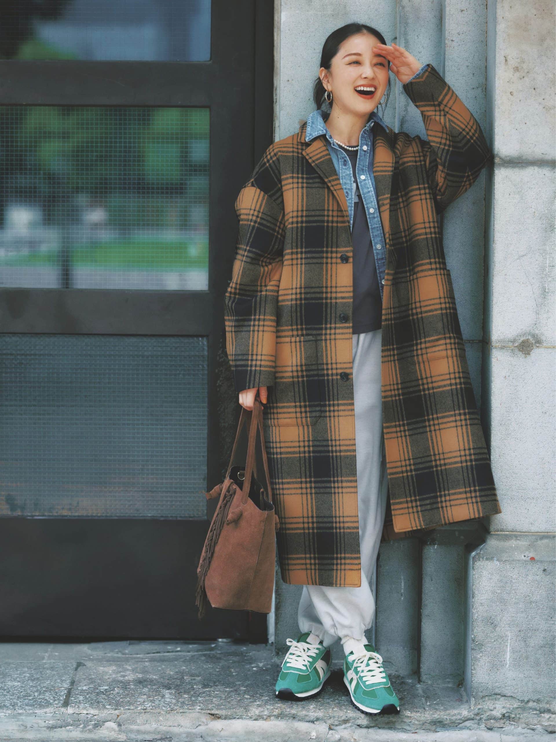 ★ チェックコートを引き立てる、グリーンスニーカー