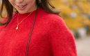袖デザインも可愛い【赤ニット】は、ブラウン合わせで今年らしく