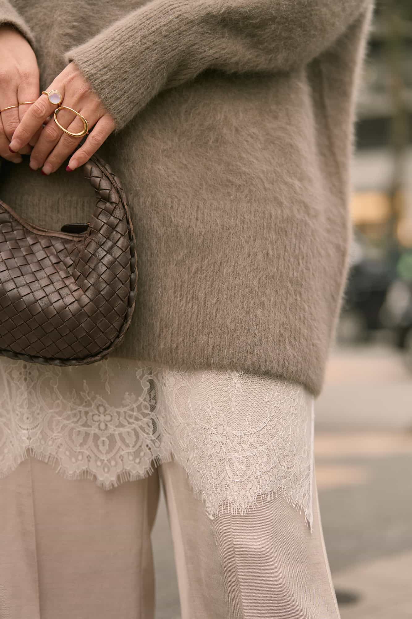 寒くなりはじめた11月頃にお迎えした前後2wayで着られるカシミア混ニット。一見ベーシックだけど、背中見せで着ると女性らしく気分も上がります♡手持ちのアイテムにスッと馴染むカラーで、少し前に購入していたレースの巻きスカートとも丈バランスが良く、着回しもできるので大正解でした。暗くなりがちな冬の淡色ワントーンコーデは、柔らかい雰囲気になるのでリフレッシュコーデにピッタリです!