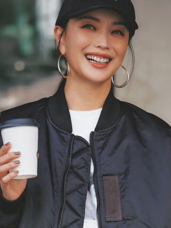 ゴツめな太ピアスがラフなコーデをより大人らしい仕上がりにシフト。エレガントな見た目は、お顔まで華やかさを作ってくれるんです。大きめラウンドならキャップ合わせでも柔らかさUP。