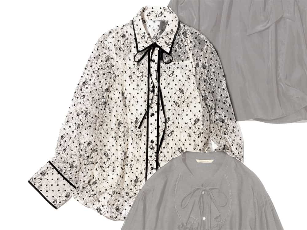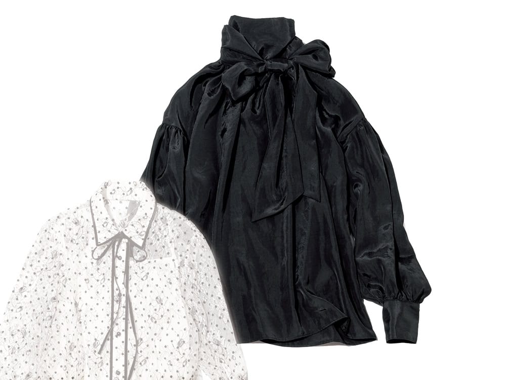 重く見えたり威圧感が出がちなほぼクロコーデ。そんなときこそ、瞬時に好印象へと導いてくれる「リボンブラウス」で華やかさをプラスして。オフィスコーデのインナーにはもちろん、きちんと感と華やぎを両立させたい卒入学式シーズンにもぴったり。そしてその後は春コーデの主役をになってくれる、今買うべき最強の“モト取れ”アイテムです!