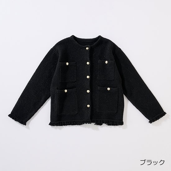 ニットのカジュアルさとツイードジャケットのカッチリ感をミックスした上品ニットジャケット。スカートともパンツとも相性抜群です。程よくゆったりしたシルエットで、ラフにもきれいめにも対応可能。ラメのきらめきとビンテージ感のあるくすみゴールドの金ボタンがリッチな印象に。ご家庭で手洗いできるイージーケアも魅力!