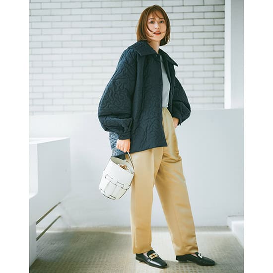①自転車や車移動ももたつかない!コクーンシルエットの「キルティングジャケット」