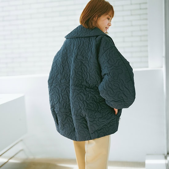 キルティングコクーンコート