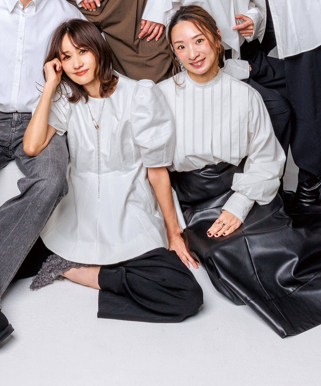 「スタイリングの想像力を刺激してくれるデザイン性と価格のバランスがいいので、人気が高いのも納得です」ブラウス¥29,700(HER.)レザースカート、リング/スタイリスト私物