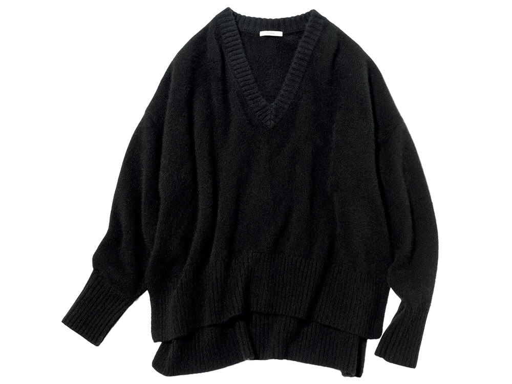 ニット¥46,200(LE PHIL/LE PHIL NEWoMan 新宿店)シャツ¥18,700(emmi/emmi ニュウマン新宿店)パンツ¥26,400(カデュネ)バッグ¥44,000(ヴァジック/ヴァジックジャパン)パンプス¥79,200(ネブローニ)ピアス¥32,560(ソコ/ズットホリック)
