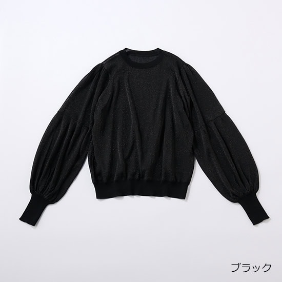 大人が着やすいトレンド「シアー」ニット。形はシンプルですが、袖のボリューム感やキラキラとしたラメの質感など素材にもこだわり、大人でも恥ずかしくない絶妙なシアー具合が魅力です。インナーに悩まない同色のキャミソール付き。ほんのり透けるシアーニットは、キラキラとした微粒のラメコーデを底上げ。手首を華奢に見せる袖口のリブ、ポワンと膨らむ袖のバランスにもこだわりました。