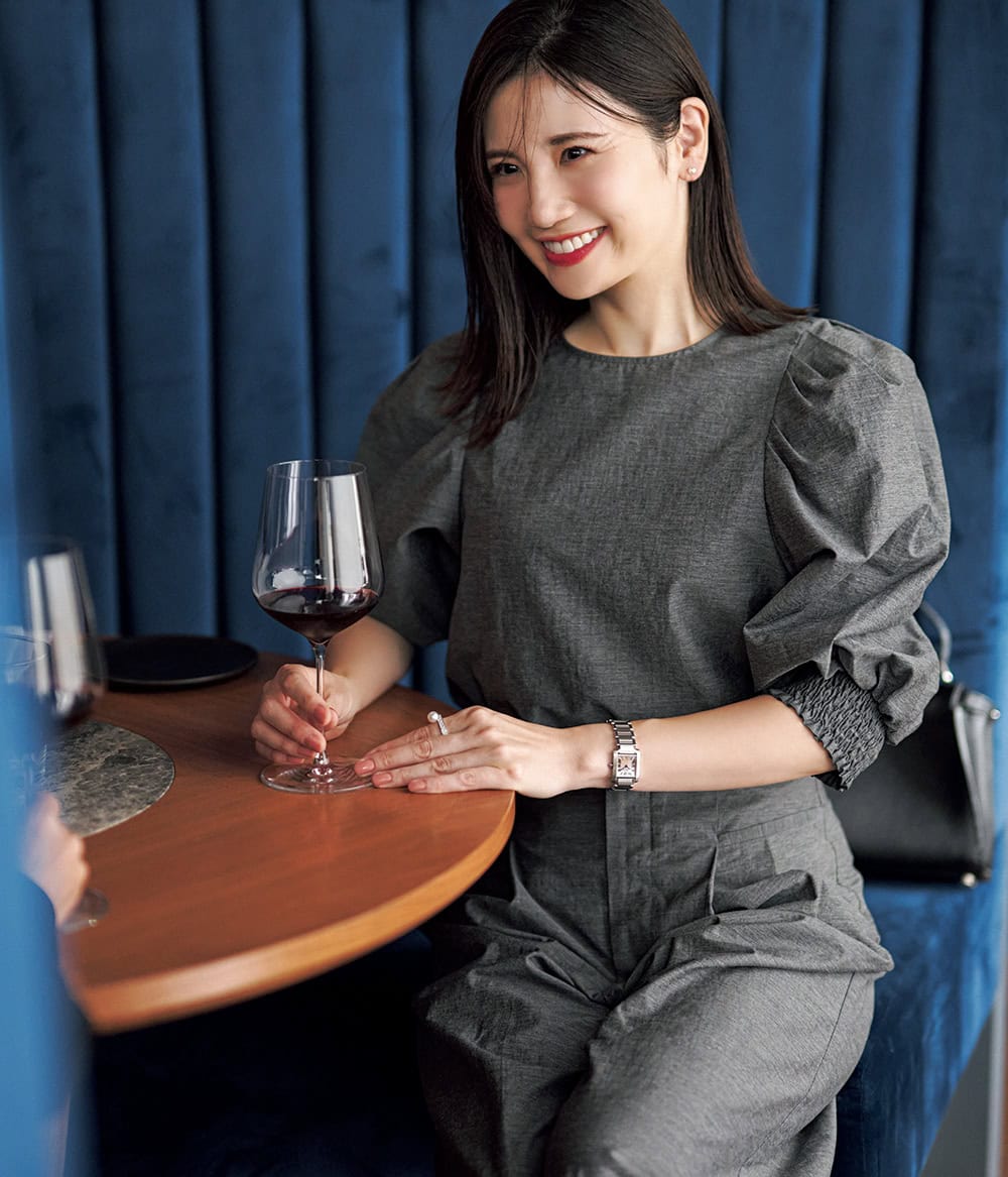 Tops&Pants : UNITED ARROWS、Bag : FENDI、Earrings&Ring : MIKIMOTO、Watch : Cartier