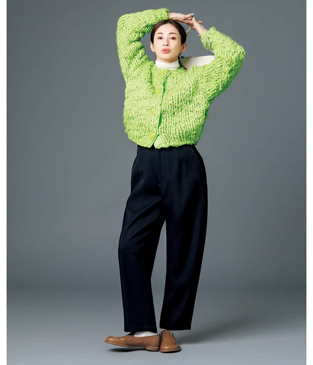 パンツ(ロエフ/エイチ ビューティー&ユース)カーディガン¥24,200(メゾンスペシャル 青山店)タートルニット¥11,000(ノーク)バッグ¥33,000(ヴァジック/ヴァジックジャパン)シューズ¥37,400(シーセイ/アイネックス)