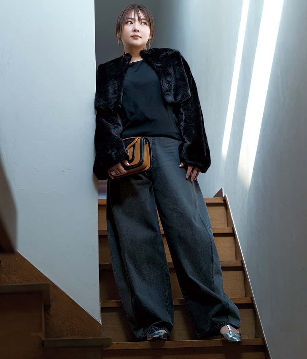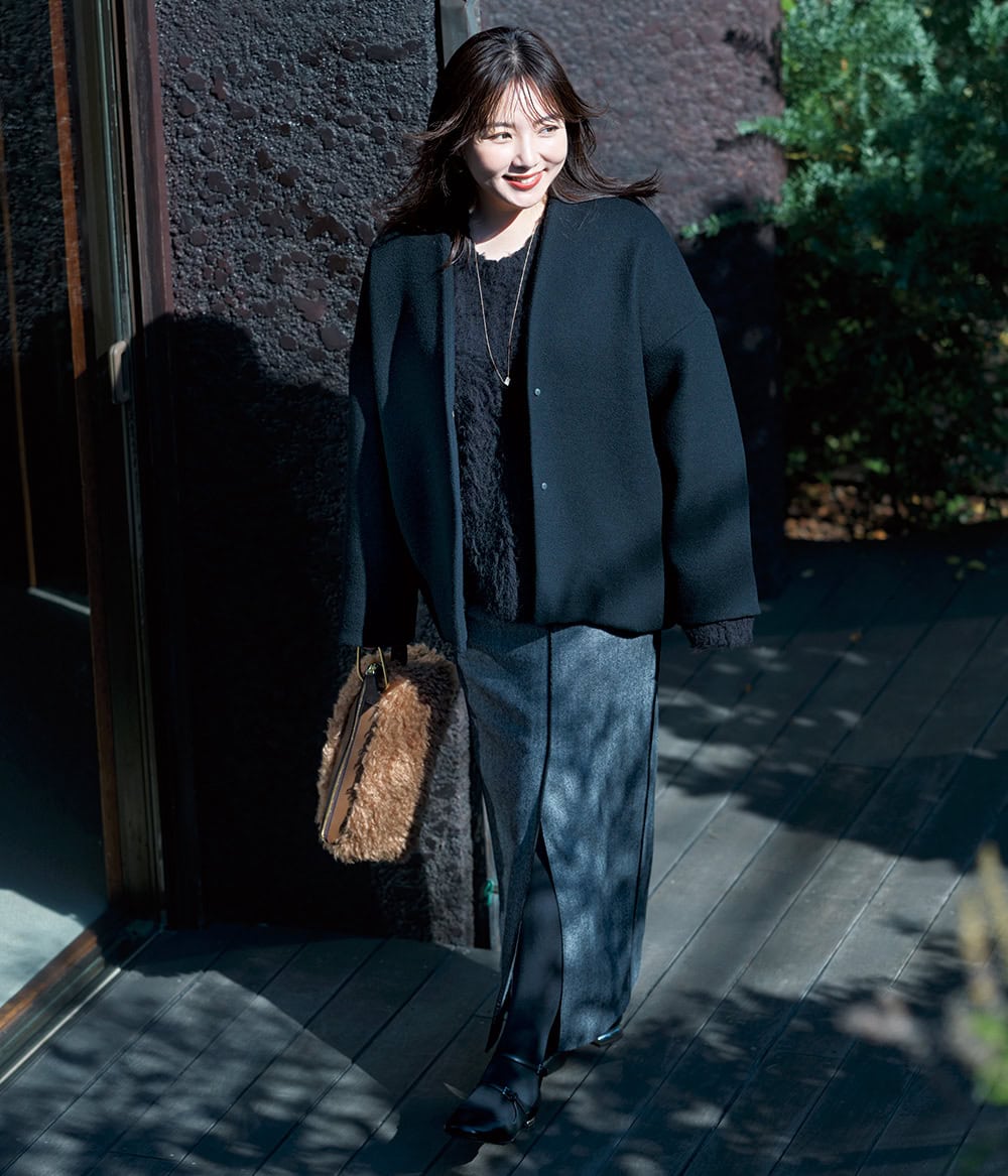 冬後半のマンネリしがちな「黒コーデ」を華やがせる方法は?野呂佳代さんが始めたのは、マシュマロ体型を活かしたシルエットで、“レディ”な仕上がりを楽しむこと。お手本コーデをご紹介します。